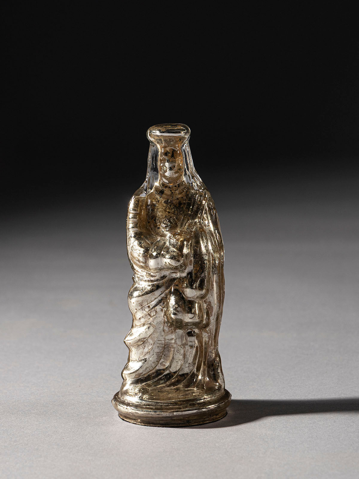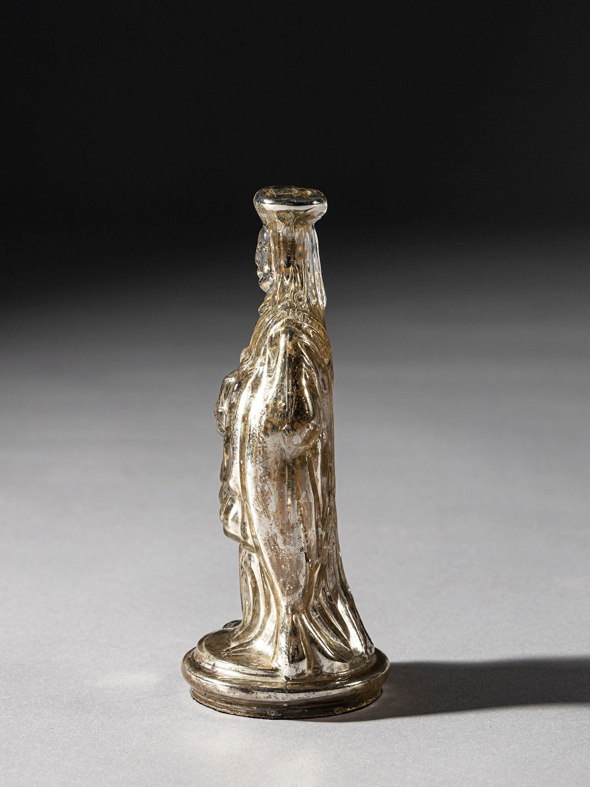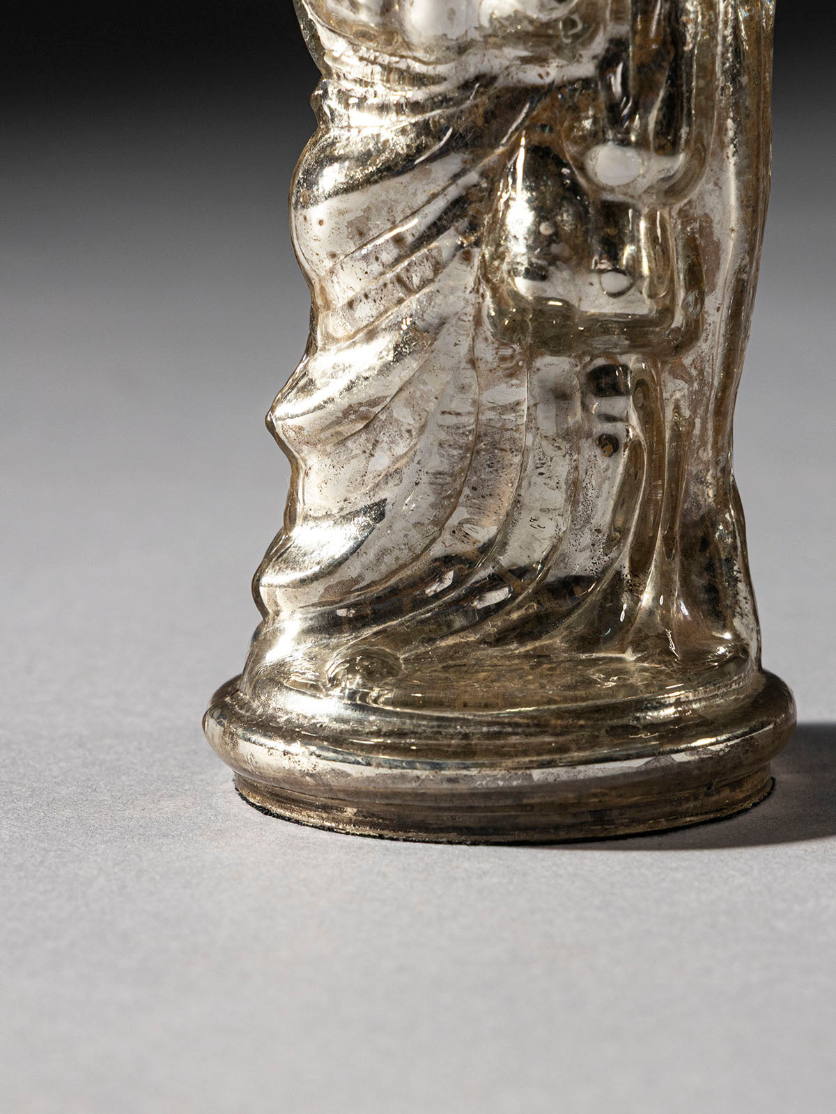 The Naduar Glass Figure is a raw, authentic expression of art and faith. Its mercury glass body carries gentle imperfections that make it feel alive, while its sculptural form embodies tenderness and protection. A meaningful piece for altars, mantels, or personal spaces, it reflects both light and emotion becoming a presence that resonates with depth and honesty rather than just decoration.