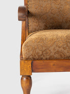 Elevate your interiors with the regal charm of our Seher Classic Royal Armchair. Featuring intricate carved arms, traditional damask upholstery, and turned wooden legs, this chair adds a luxurious antique feel to any room. Perfect as a heritage armchair or a statement lounge seat.