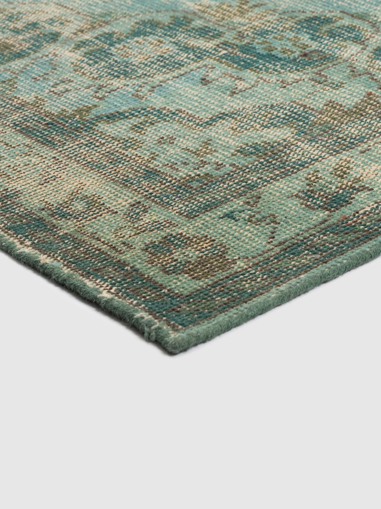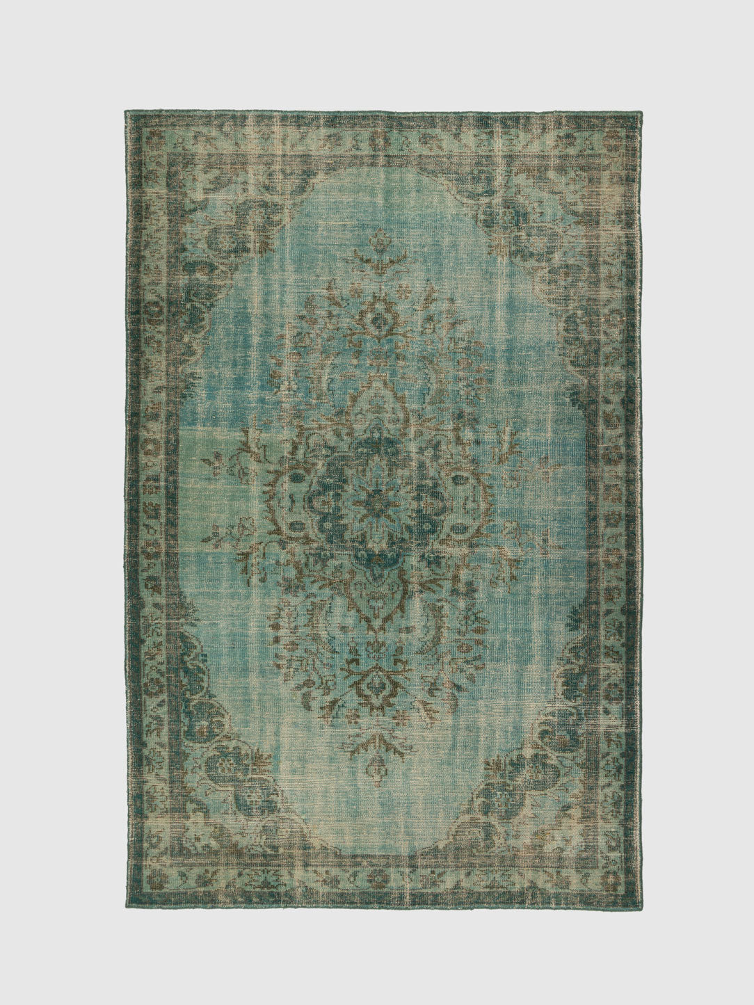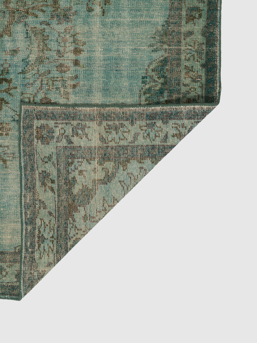 Intricate motifs radiate from the centre and dissolve into a beautifully distressed border, giving the rug depth without overwhelming the eye. Each knot is crafted by skilled artisans using premium wool, resulting in a plush texture that is both luxurious and long lasting. The subtle tonal variations and aged finish make this carpet a versatile choice for interiors that appreciate classic beauty with a modern softness.