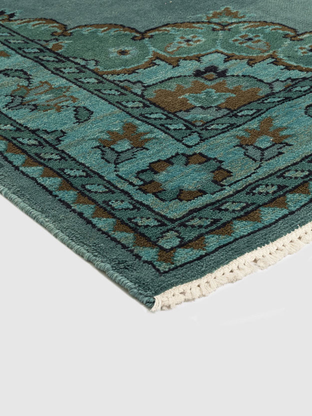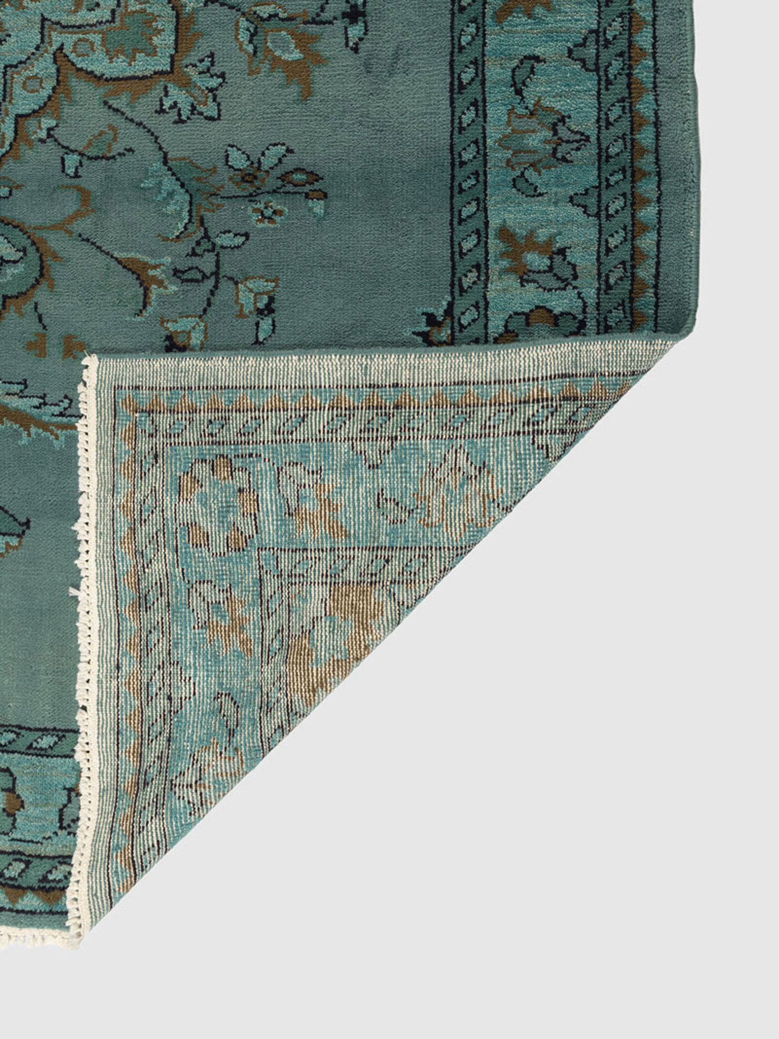 Invite timeless artistry into your home with the Sinaia Wool Knotted Carpet, a luxurious hand-knotted rug that celebrates classic motifs through a modern lens. Its serene blue-green palette is enriched with soft antique undertones, creating a calming visual harmony that transforms any room into a refined, welcoming space.