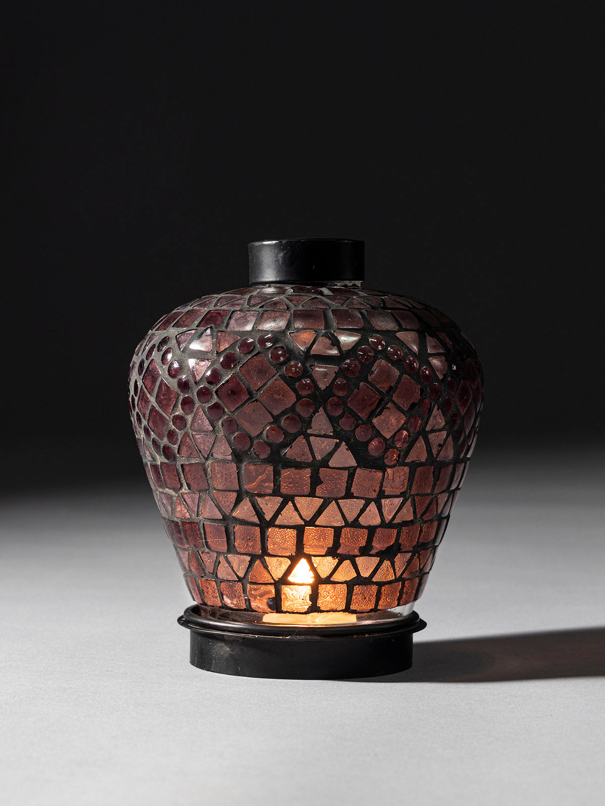 The Wallora Candle Tealight Candle Shade is a handcrafted mosaic accent in deep plum tones that glows beautifully when lit. Perfect for cozy evenings, festive gatherings, or romantic dinners, it casts a warm, soothing light across your space. Place it on dining tables, mantels, or bedside corners to create an inviting ambiance. A versatile décor piece that transforms everyday moments into experiences filled with elegance and charm.