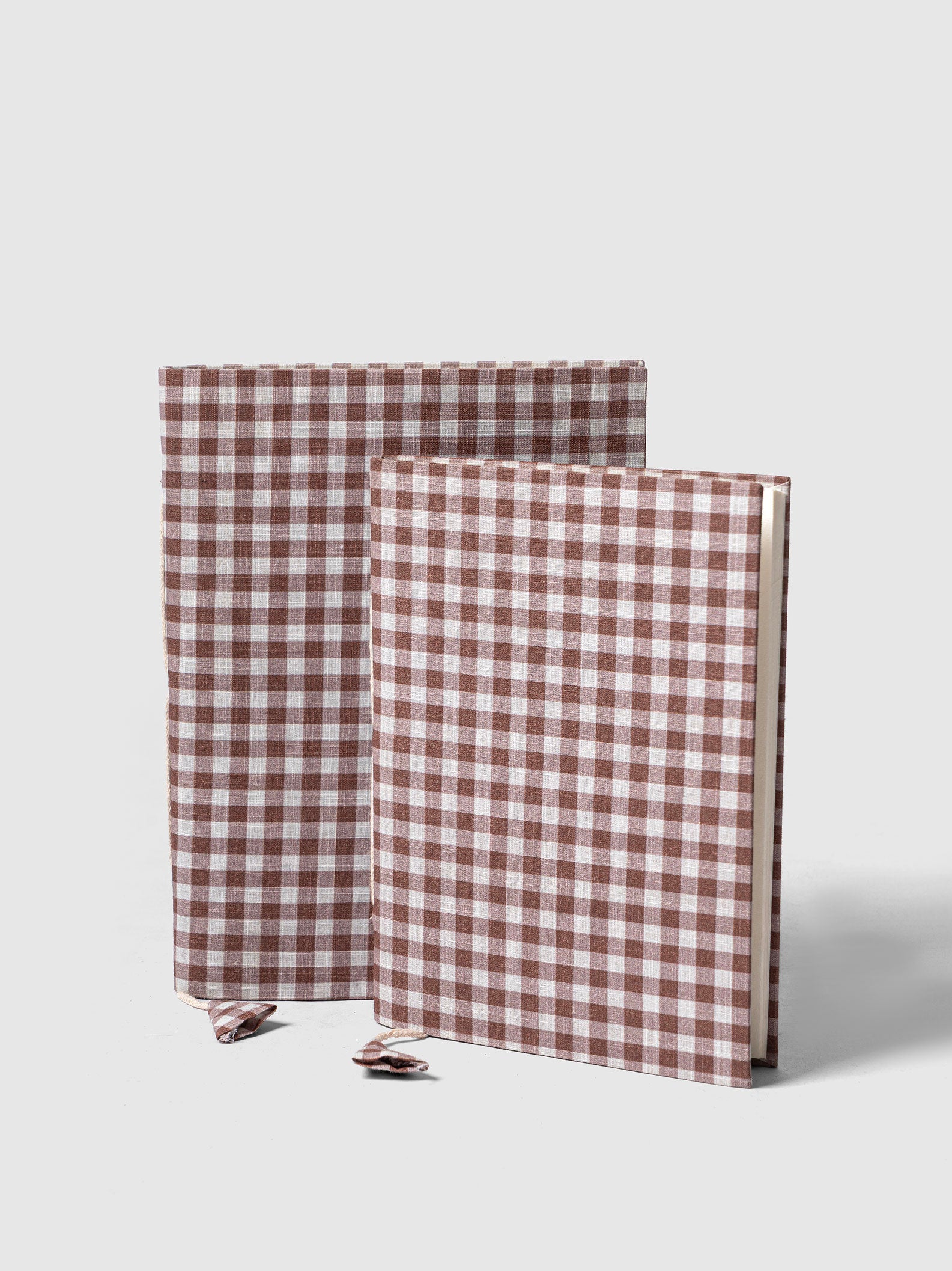 This rust gingham journal brings warmth and elegance to your desk. Made from fine voile fabric, it offers a soft-touch cover and a charming tassel bookmark. Ideal for journaling, sketching, or mindful writing, it’s a perfect blend of aesthetics and utility—a must-have for stationery lovers.