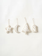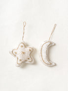 Crafted in soft plush fabric and delicately hand-embellished with golden glass beads, our Winter White Beaded Ornament Set exudes timeless charm. Featuring a star, moon, tree, and house, these ornaments bring a cozy glow and sparkle to your décor. Lightweight and elegant, they’re perfect for adorning trees, wreaths, or gifts—a festive keepsake set to treasure or gift with love.