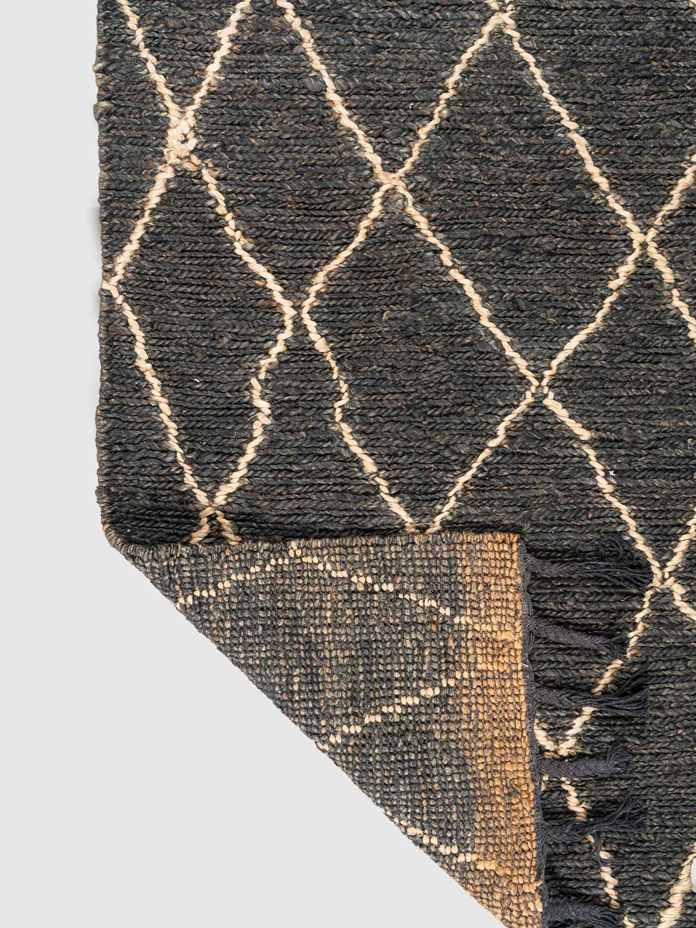 Offering a sturdy, textured feel, our Kuria Jute Rug features a black base with a light thread diamond pattern. Its long rectangular shape accented by fringed ends makes it extremely stylish and versatile for all space types.