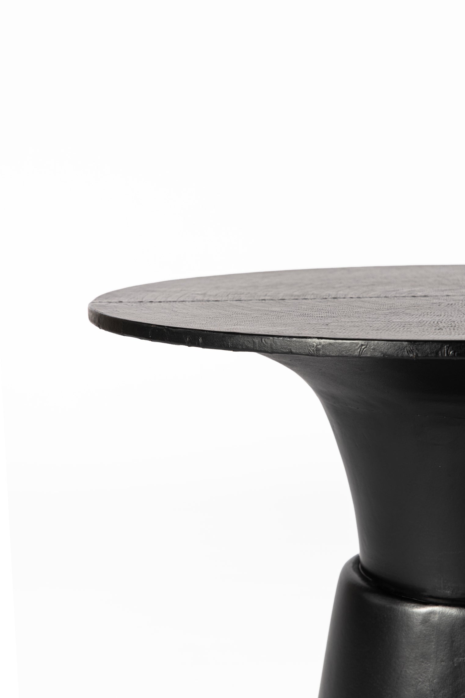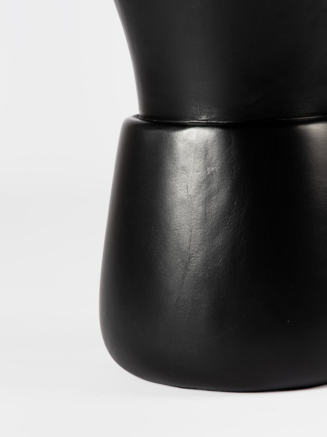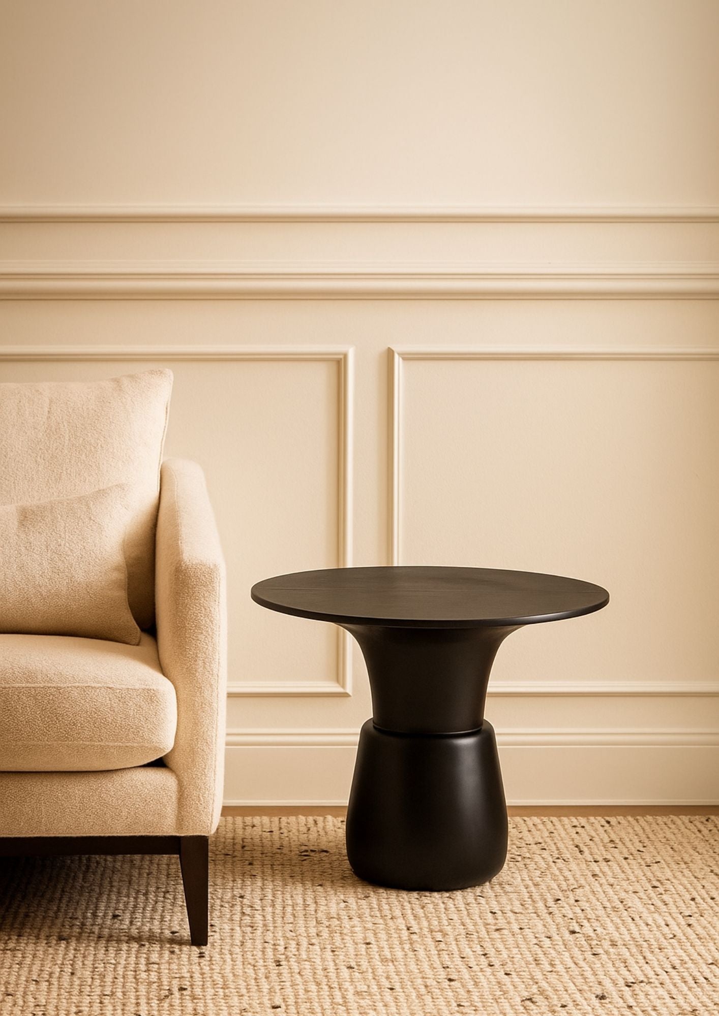 This sculptural black table brings a bold, contemporary edge to any room. Its smooth, hand-finished base and wide, rounded top create a striking silhouette that feels both grounded and refined. Perfect as a centre table or statement piece, it adds depth and modern character to curated spaces. A timeless form that elevates your home with quiet, effortless style—made to be admired every day.
