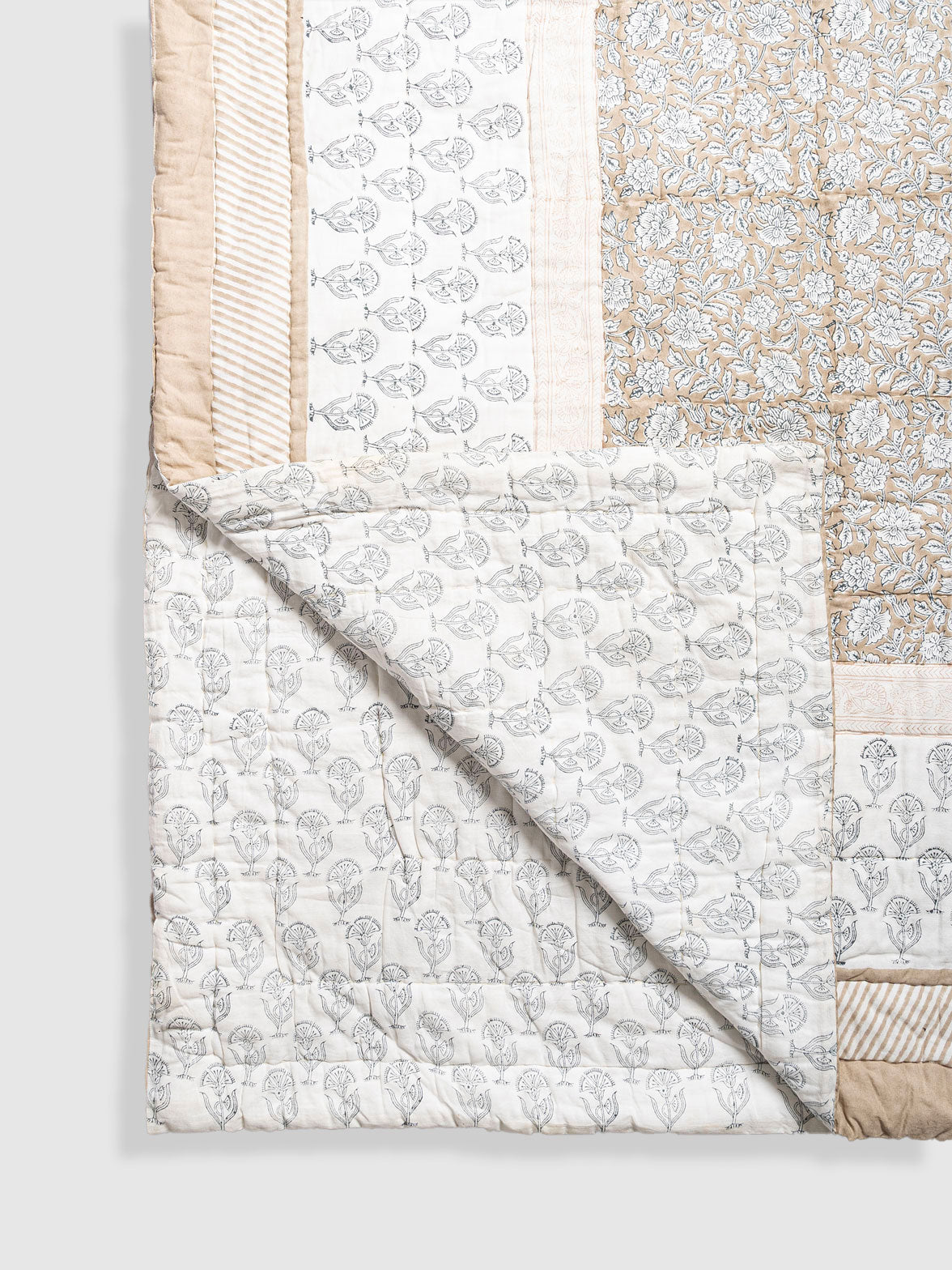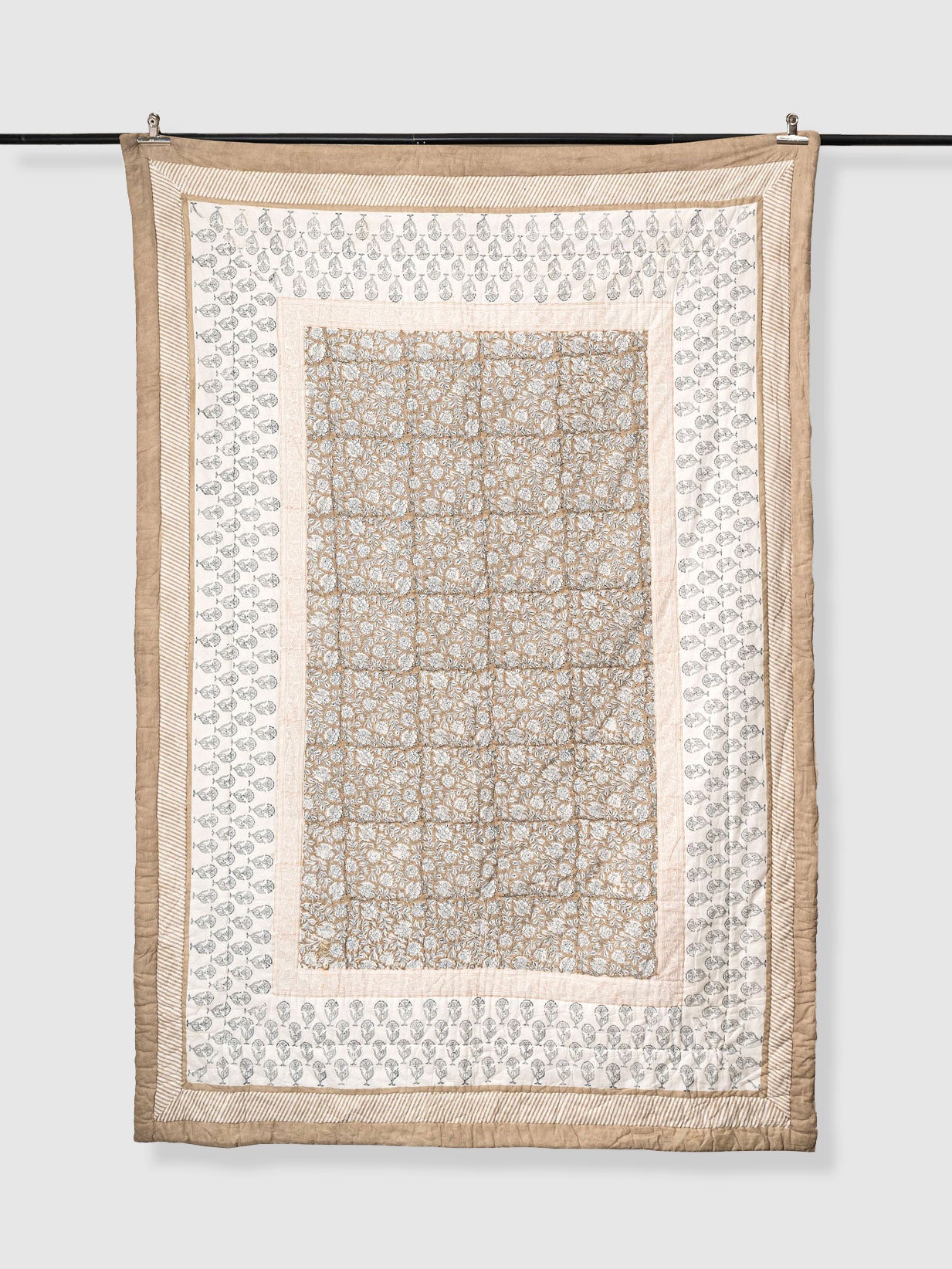 Inspired by nature’s tones, this elegant paisley print cotton quilt in beige and taupe offers subtle charm. Perfect for minimalist and earthy home décor styles, this breathable quilt is both soft and stylish for all-season comfort.