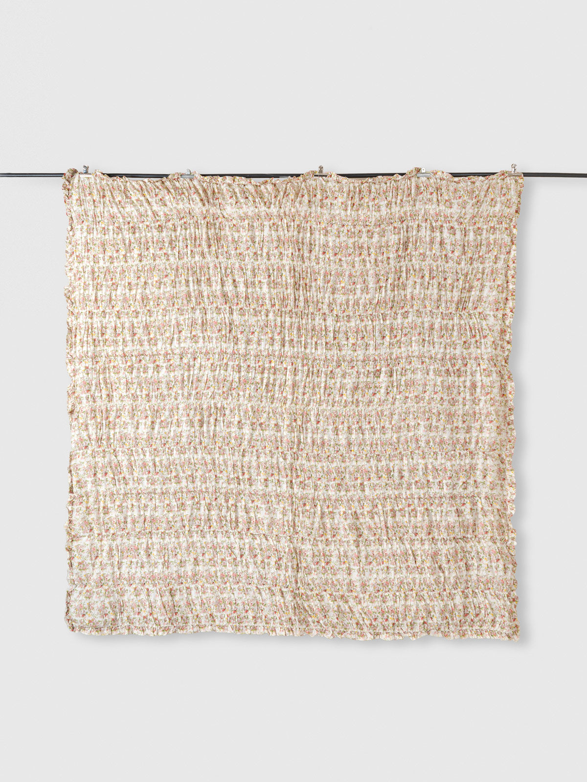 The Sundown Meadow Printed Quilt captures the calm beauty of fields touched by the last light of day. Its hand printed surface features delicate floral and leafy patterns in soft shades of gold, rust, cream and muted brown, creating a warm and restful composition that feels like a quiet evening in nature. The subtle repeats and gentle colour transitions give the quilt a soothing, meadow-like charm.