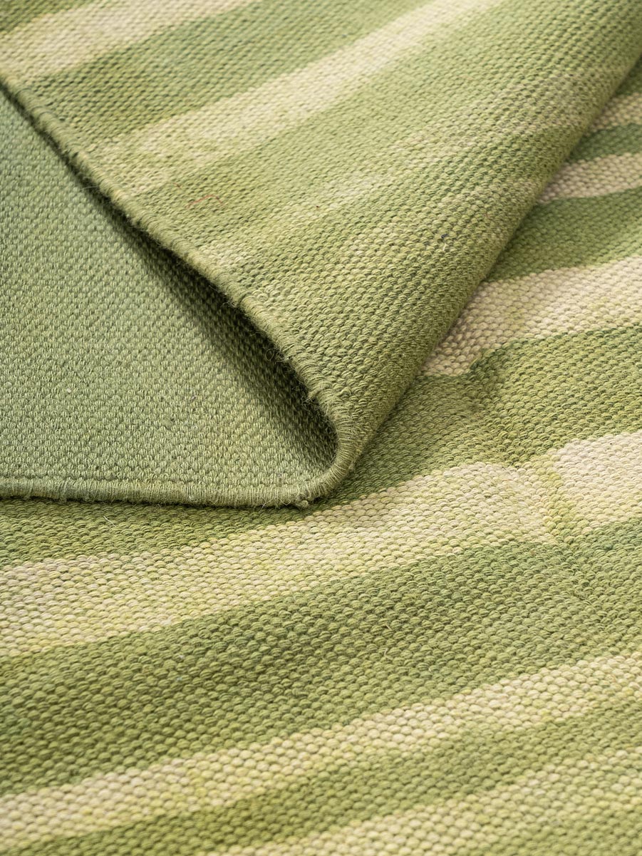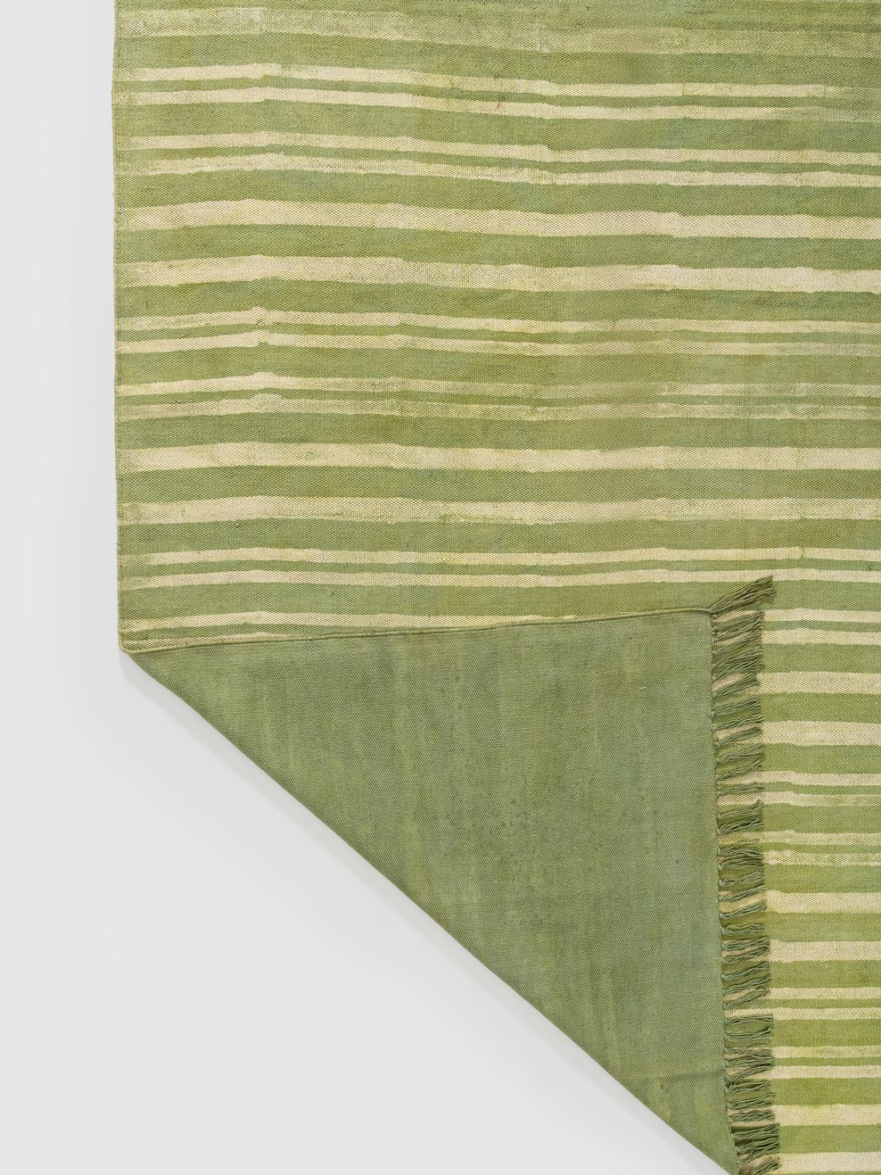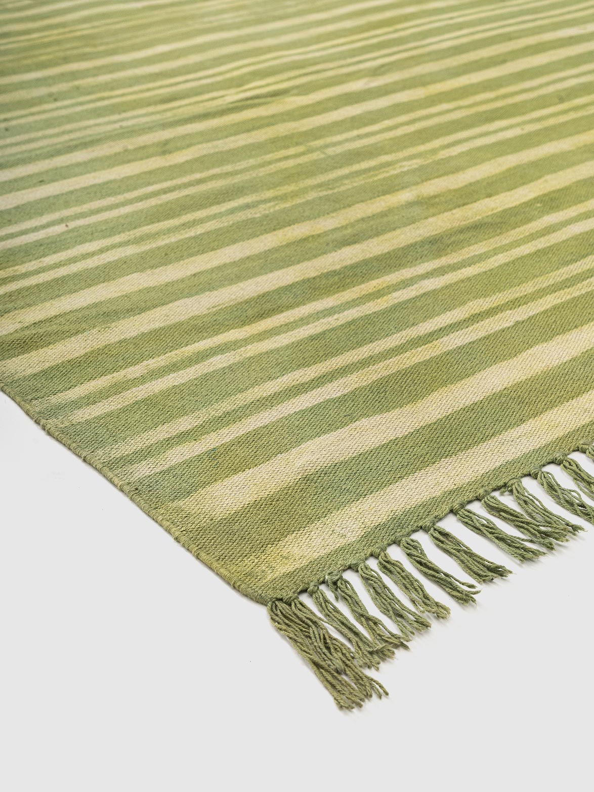 Refresh your space with this green cotton printed rug featuring a subtle striped design. Handcrafted from breathable cotton, it offers both comfort and style. Ideal for living rooms, bedrooms, or entryways, this eco-friendly rug enhances interiors with its earthy tones and artisanal charm. A perfect modern cotton area rug.