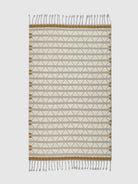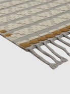 Bring modern simplicity and handcrafted charm into your home with the Madeira Wool Flatweave Carpet, a beautifully woven rug that balances clean geometry with warm, earthy accents. Its soft ivory base is detailed with delicate triangular motifs arranged in rhythmic rows, creating a subtle yet engaging pattern that compliments both minimalist and contemporary interiors. Warm ochre stripes frame the rug at both ends, adding a touch of contrast and artisanal character.
