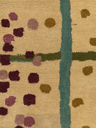 Introduce contemporary elegance to your home with the Rapley Wool Tufted Carpet. Crafted from high quality wool, this design blends structured geometry with playful dotted detailing. The warm golden base is accented with rich berry toned clusters and teal linear borders, creating a modern composition that feels artistic yet balanced.