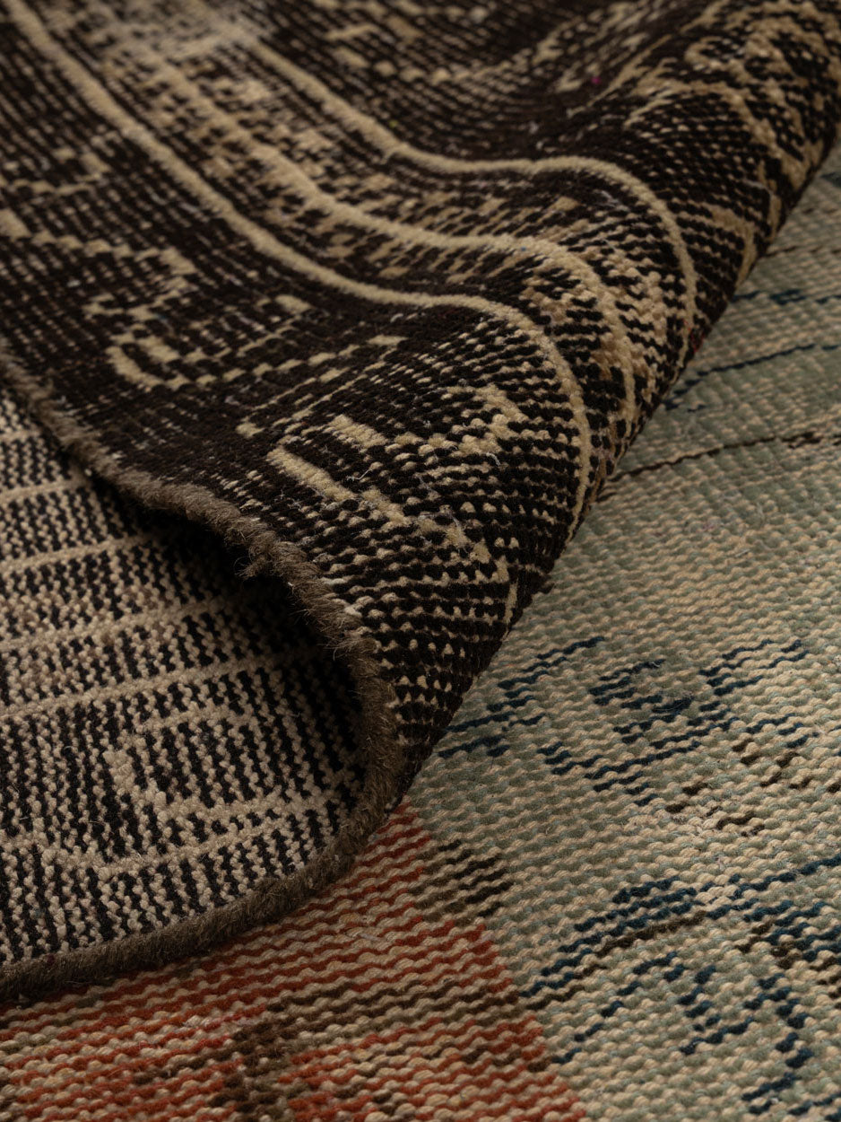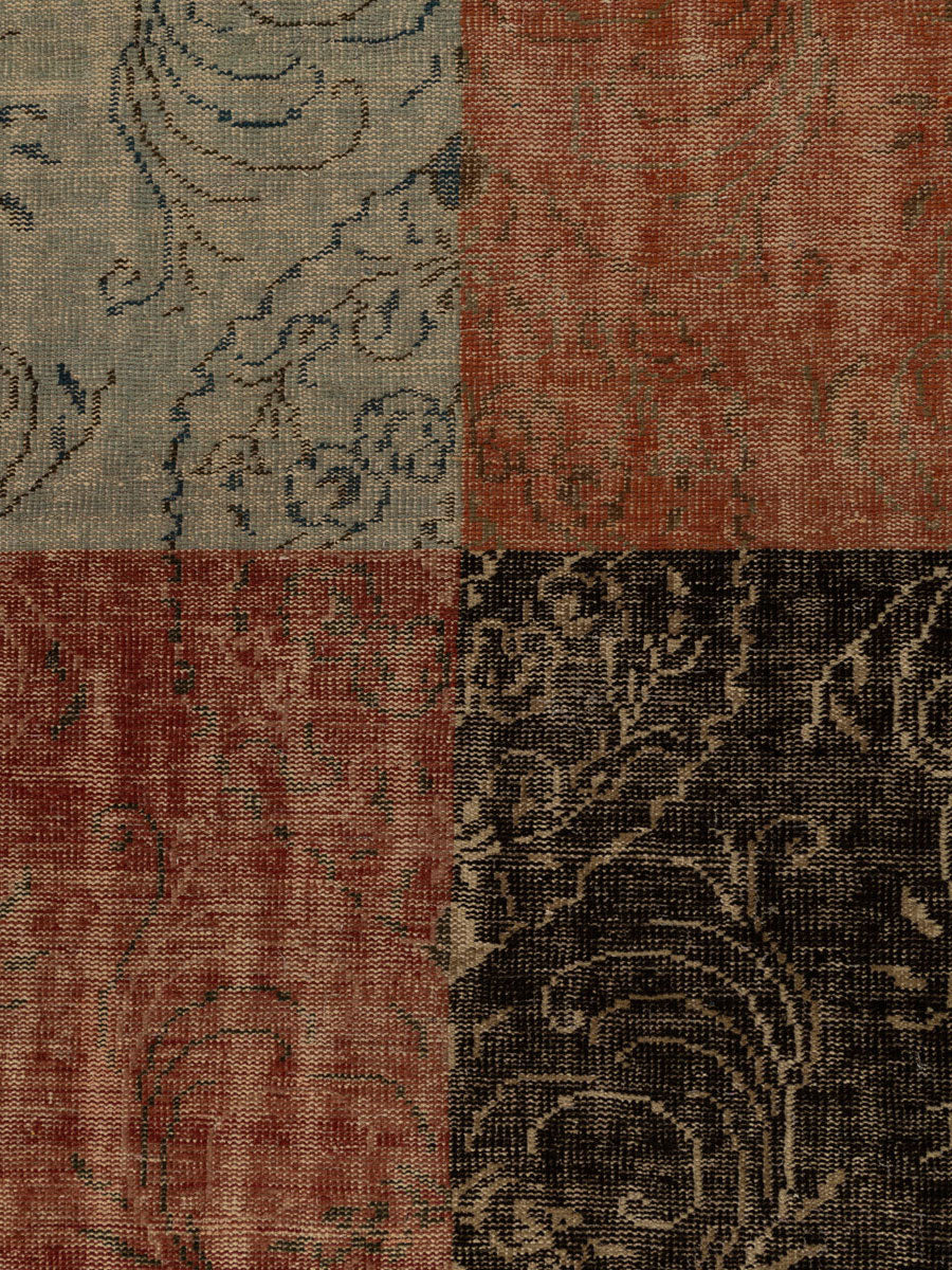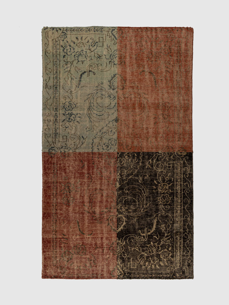 Add character, colour, and contemporary artistry to your home with the Tokoroa Wool Knotted Carpet, a hand-knotted rug that blends traditional motifs with a modern patchwork aesthetic. Crafted in four distinct quadrants-earthy terracotta, muted teal, warm rust, and deep charcoal, the rug creates a bold visual statement while maintaining the subtlety of an aged, vintage finish.