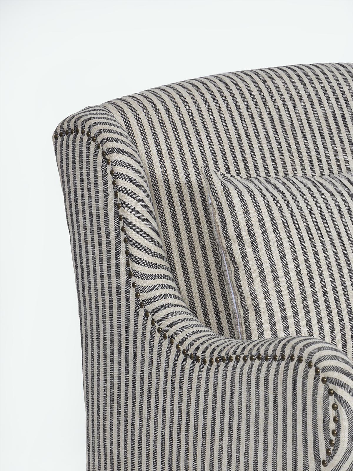 Elevate your living space with this elegant striped sofa, featuring a timeless design in neutral tones. Crafted for comfort and durability, it includes plush cushions and a sturdy wooden frame. Perfect for both modern and traditional interiors, this versatile sofa is ideal for living rooms or cozy nooks, offering a stylish and inviting seating solution.