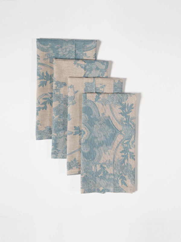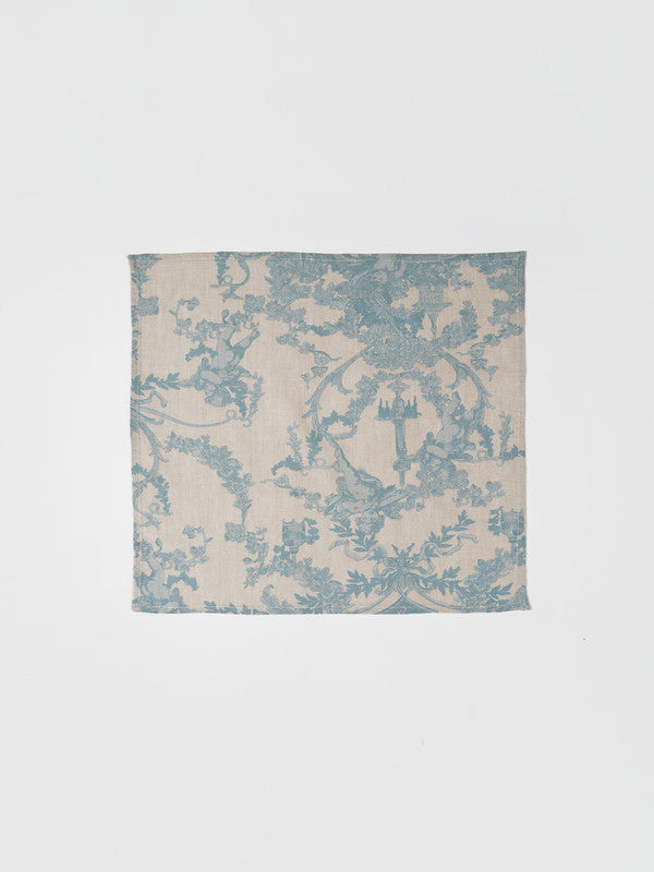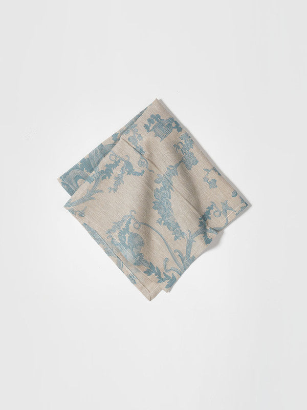 Elevate your dining experience with the exquisite charm of this digitally printed Table Napkin. Adorned with intricate blue florals and elegant scrolls on a serene linen hued background, it offers a touch of classical beauty, perfect for both casual brunches and formal dinners.
