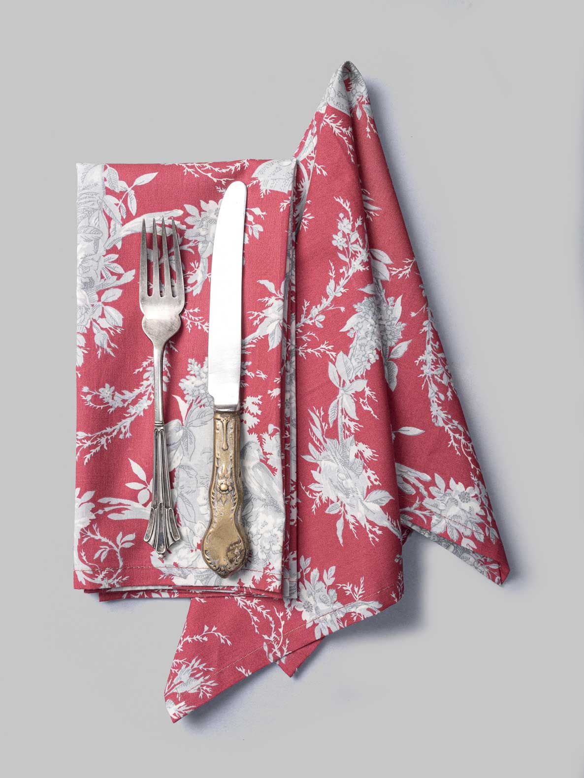 Elevate your dining table with the bold elegance of this digital printed Fuchsia napkin. Featuring intricate white floral motifs set against a rich crimson background, this piece can add a dramatic touch of sophistication to your table setting.