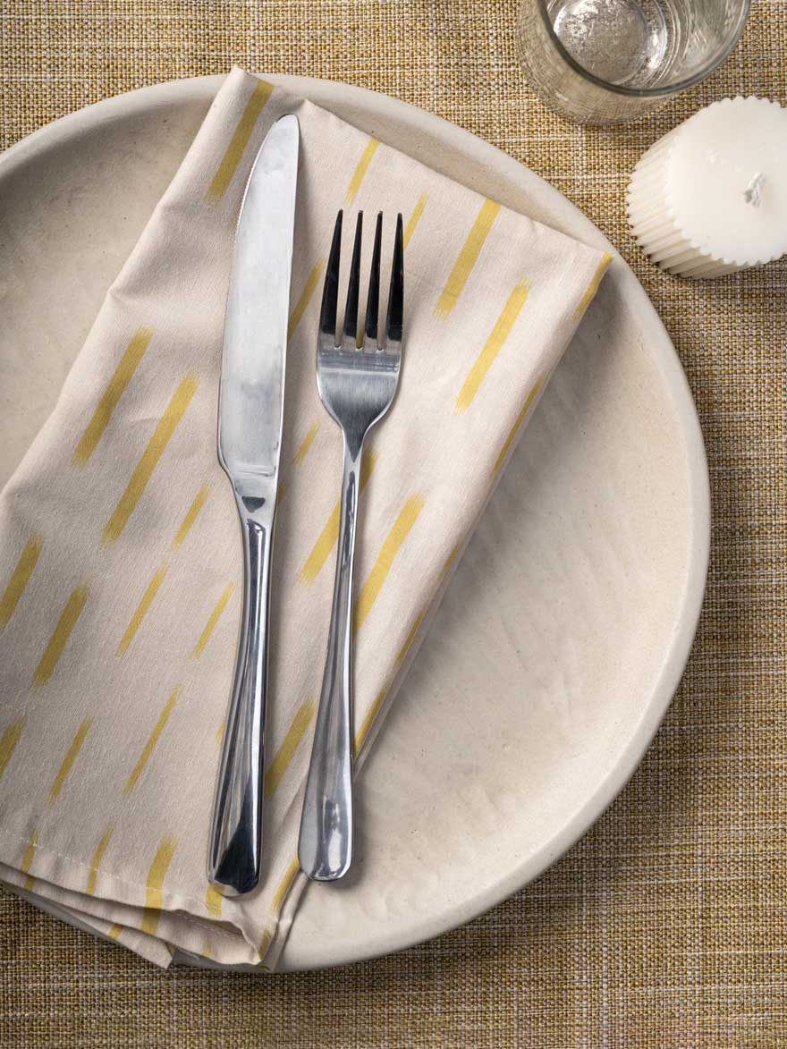 Add a dash of modern flair to your dining setup with our Losar table napkins. Featuring a minimal design with vibrant yellow bars, this digitally printed napkin is both eye-catching and elegant, perfect for contemporary tables seeking a pop of color and stylish simplicity.