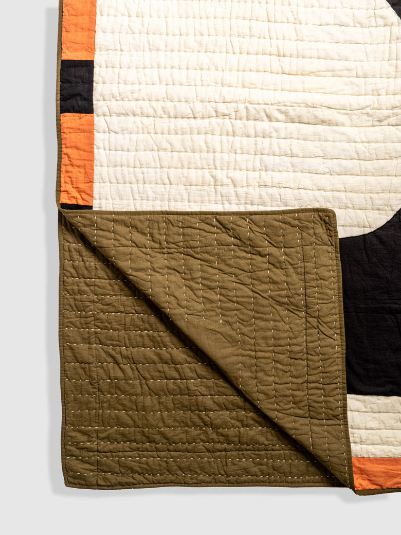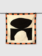 Make a bold statement with this graphic black arch motif on a cream cotton base, framed in rust and black checks. Perfect for eclectic and contemporary décor lovers who seek individuality in design.