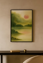 Misty Morning Glow is a serene tribute to the quiet beauty of dawn, where soft mist rises gently over calm waters and a glowing sun bathes the landscape in hues of pink and gold. This printed canvas artwork captures the fleeting magic of morning, evoking peace, renewal, and the gentle awakening of nature.