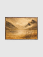 The Golden Veil is a luminous portrayal of nature draped in golden light, where mist rises gently over still waters and mountains fade into a dreamlike haze. This printed canvas artwork captures the quiet poetry of dawn, evoking a sense of mystery, renewal, and timeless calm.