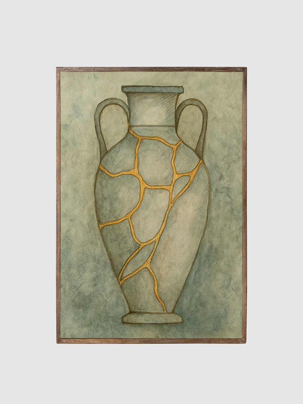 Every line tells a story of endurance, reminding us that scars are not flaws but symbols of strength, growth, and transformation. The muted tones of the vessel contrast gracefully with the radiant gold, creating a composition that feels timeless, elegant, and deeply symbolic.