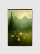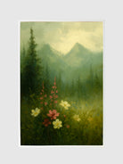 Whispering Wildflowers captures the tender beauty of nature in bloom, with delicate blossoms standing tall against a backdrop of misty mountains and evergreen trees. This printed canvas artwork evokes a sense of peace and wonder, where every flower seems to hold a quiet story carried on the breeze.