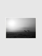 Winds of Freedom captures the raw spirit of untamed nature with two wild horses galloping across a mist-covered field. The monochrome tones and sweeping landscape create an atmosphere of mystery and exhilaration, evoking both the beauty of open spaces and the unrestrained energy of freedom.