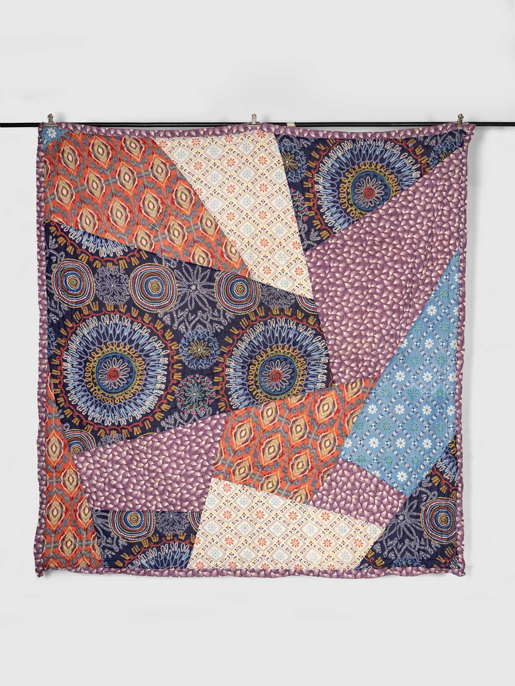 This eye-catching patchwork quilt blends intricate mandala motifs with bold geometric patterns. The vibrant hues and handcrafted design add bohemian flair to any home. Whether used as a statement piece on a bed or a decorative throw, this quilt brings warmth, style, and creativity to your lifestyle.