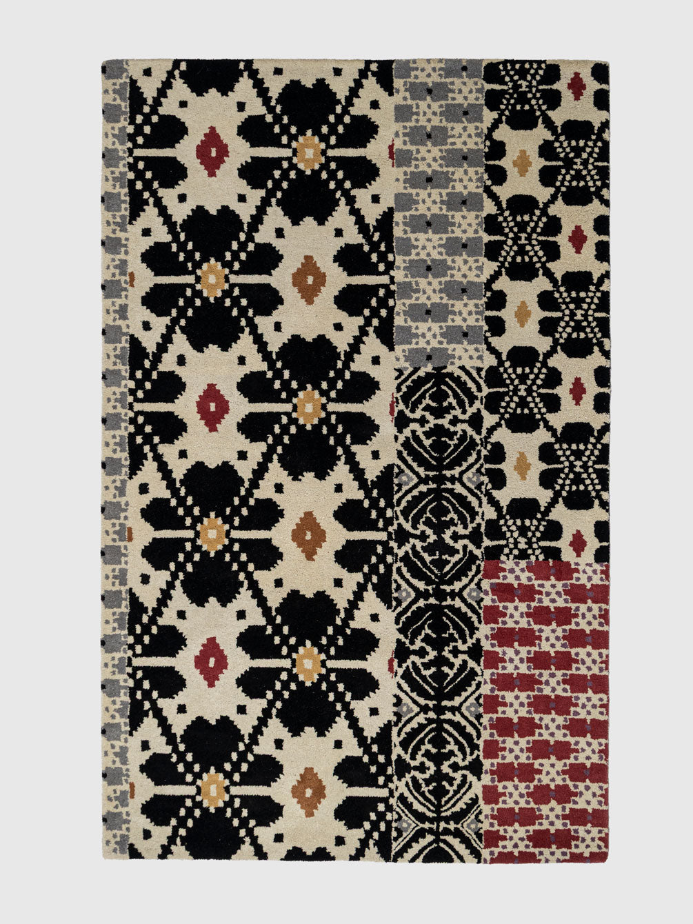 Its hand tufted texture and intricate geometric detailing add depth, rhythm and cultural richness to living rooms, bedrooms and lounge areas. This wool carpet enhances any space with refined craftsmanship, striking visual character and timeless design appeal.