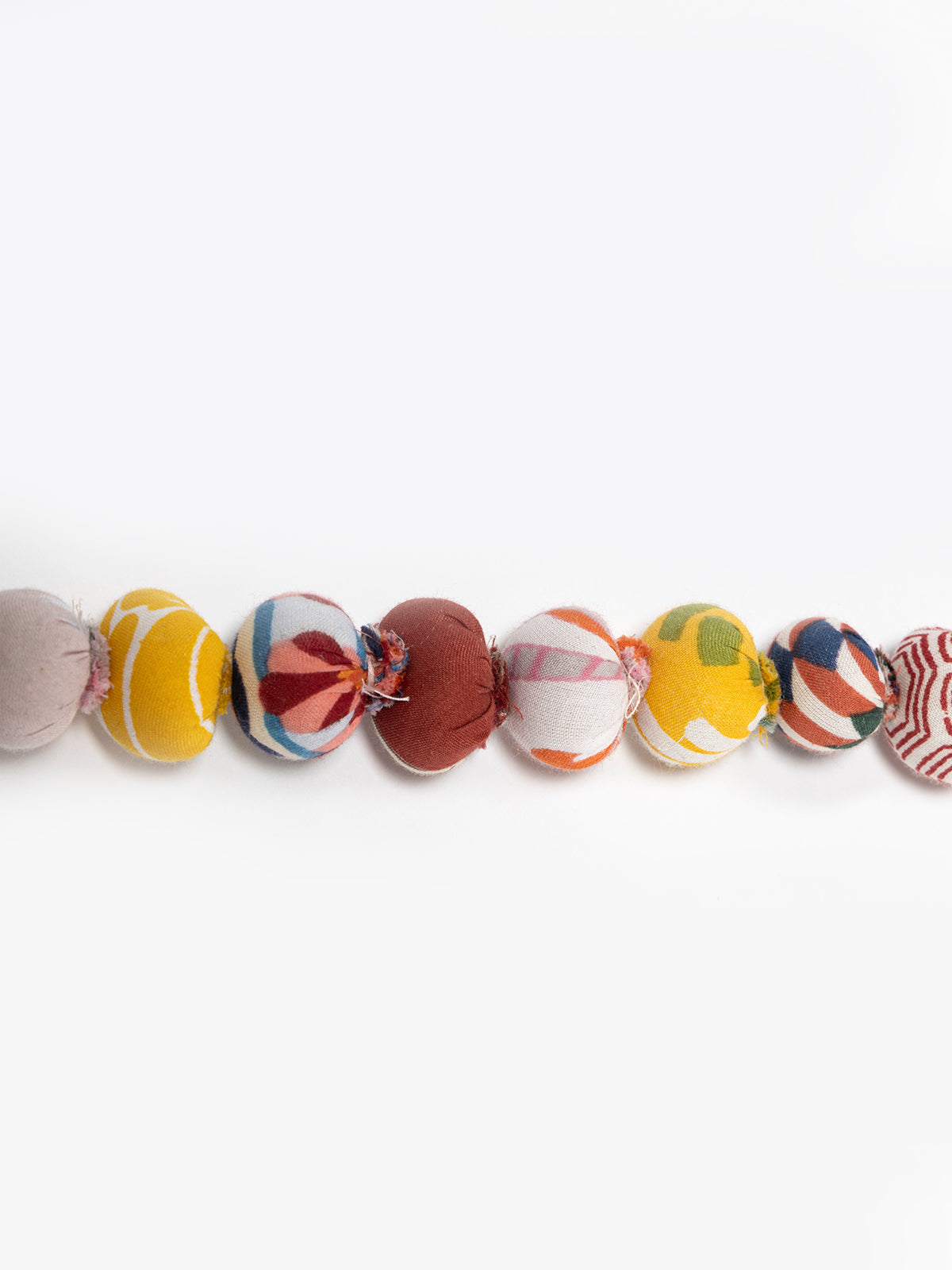 Brighten your festive decor with this upcycled cotton garland, handcrafted from vibrant fabric scraps. Each sphere tells a unique story of sustainability, creating an eco-friendly charm for your space. Perfect for Christmas trees, mantels, or walls, it adds a colorful, rustic touch to your celebrations with care for the planet.