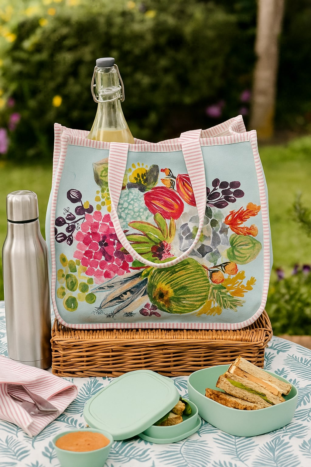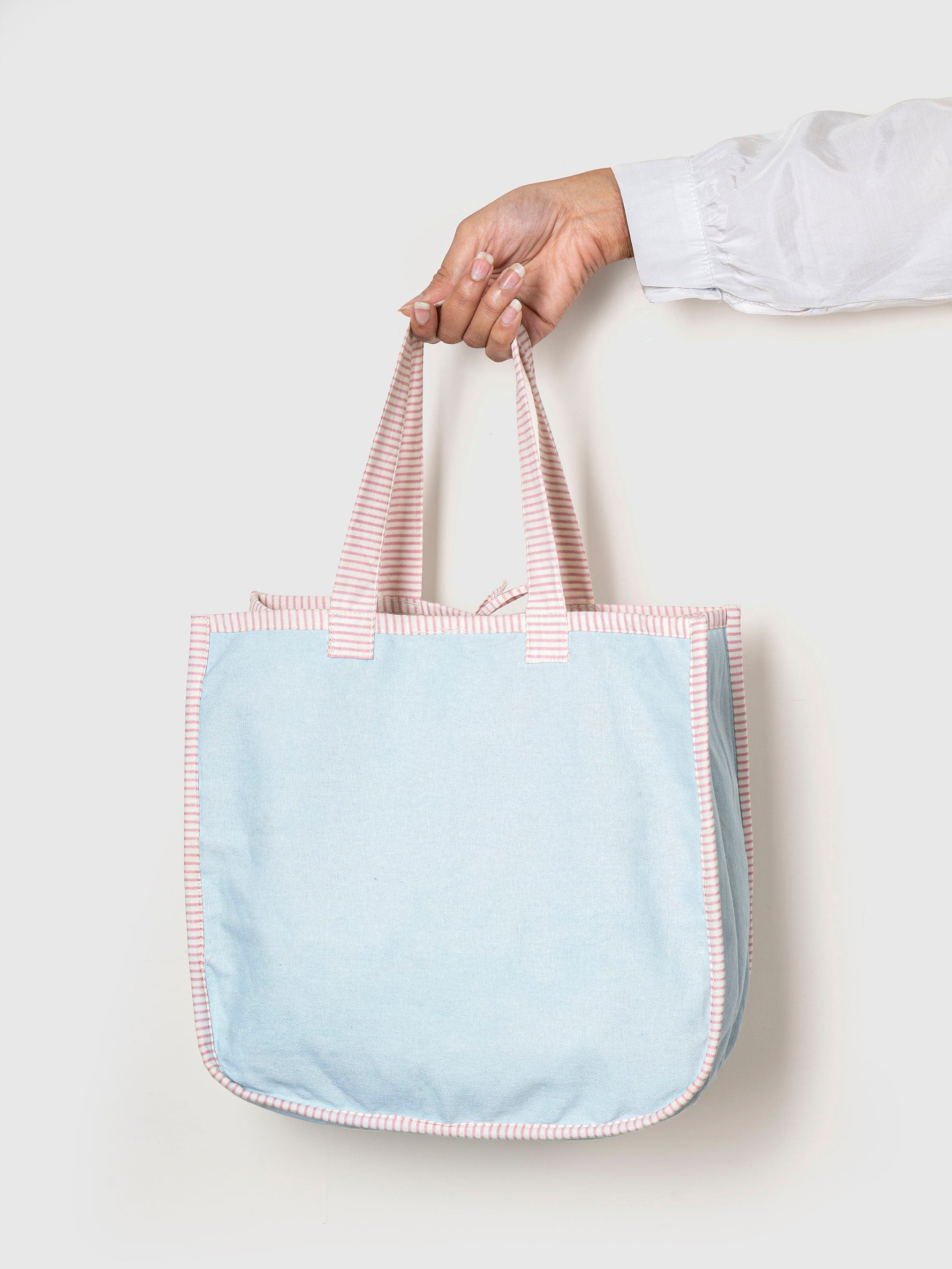 A burst of tropical joy you can carry. This handcrafted tote is more than a bag — it’s a vibrant celebration of color, utility, and sustainable charm. Ideal for your everyday runs or weekend escapes. Its boxy form and striped handles make it perfect for carrying your tiffin, books, or everyday essentials. Finished with contrast piping and a neat structure, it’s a daily essential with a designer