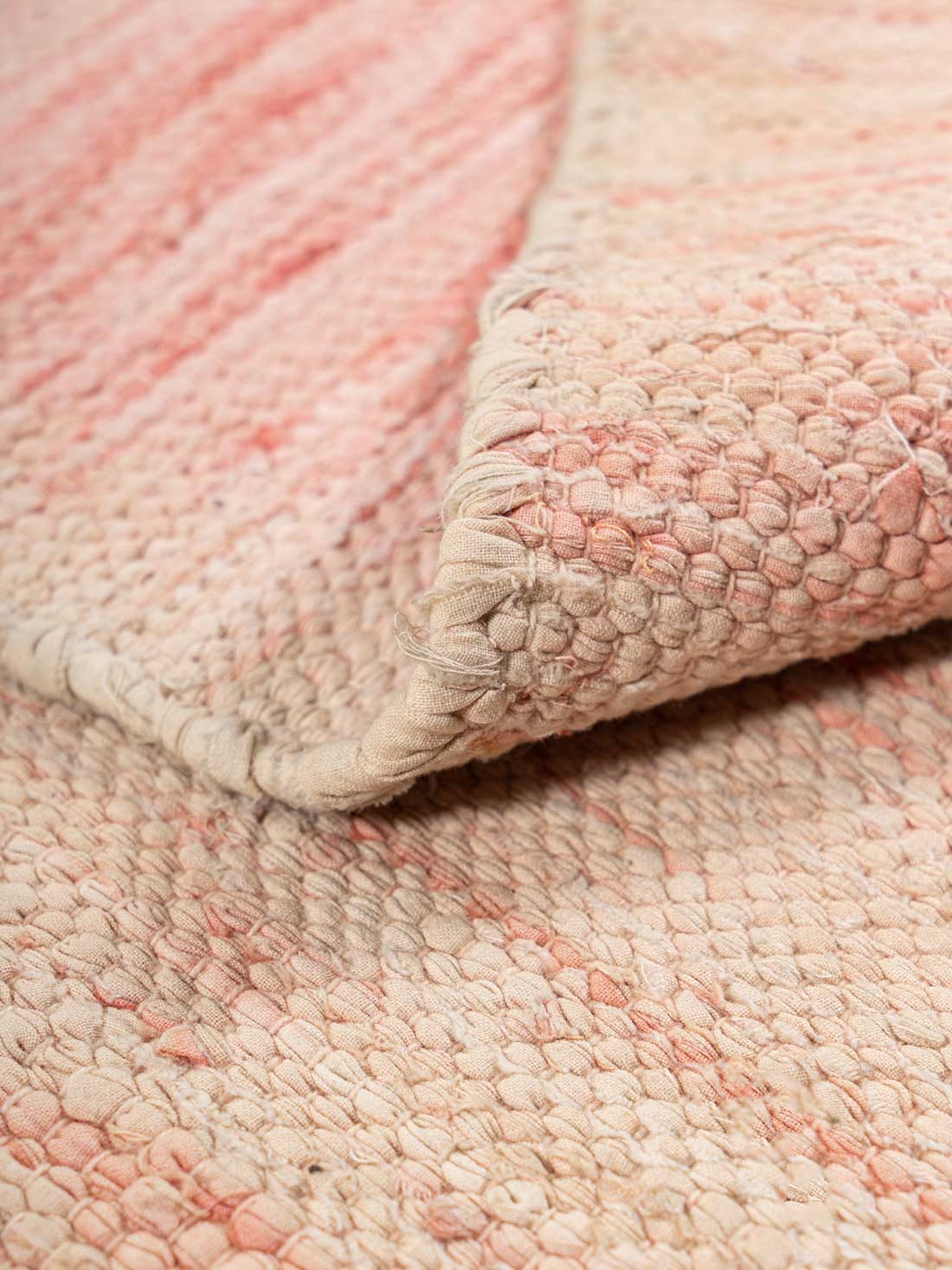 This cotton rug features a soft pink and beige gradient with subtle, handcrafted texture. Its minimalist design complements modern interiors, while the fringed edges add a touch of traditional charm. Made from durable cotton, this rug is perfect for adding warmth and elegance to any living space, bedroom, or dining area.