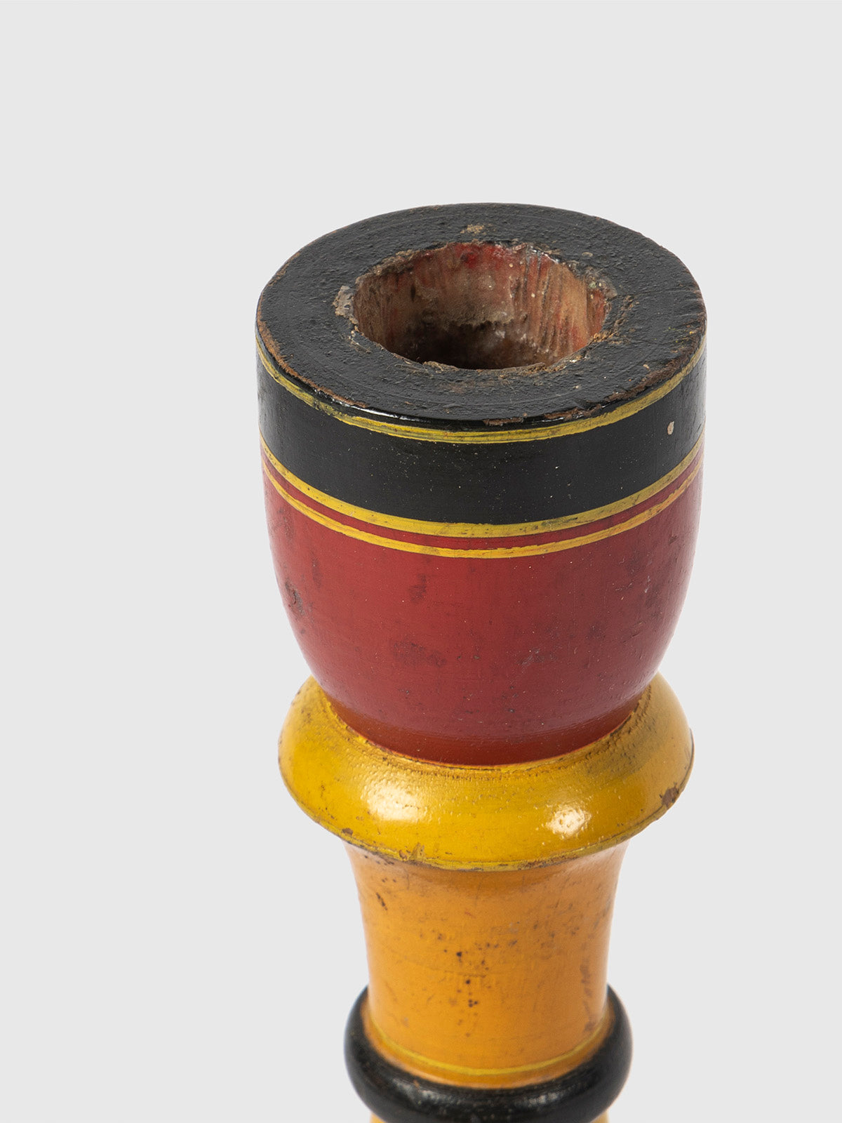 Set of handcrafted wooden candle holders with vibrant multicolor detailing and a vintage-inspired finish. Perfect for creating a cozy ambiance, these unique pieces add a pop of color and charm to dining tables, mantels, or sideboards. Ideal for eclectic, bohemian, or rustic interiors, blending functionality with timeless artistic appeal.